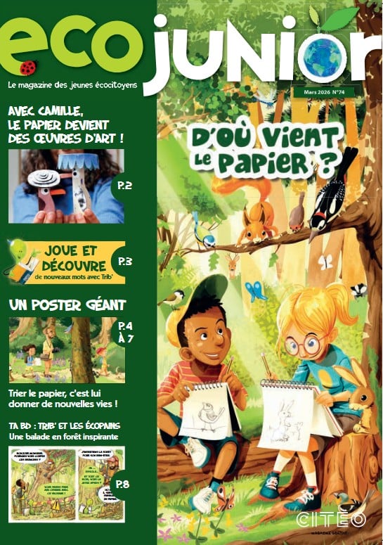 Ecojunior, le magazine Pédagogique et ludique sur l’environnement. Il propose aux enfants de 8 à 12 ans de découvrir les coulisses du tri et du recyclage, ses bénéfices environnementaux et comment agir concrètement au quotidien pour protéger la planète.